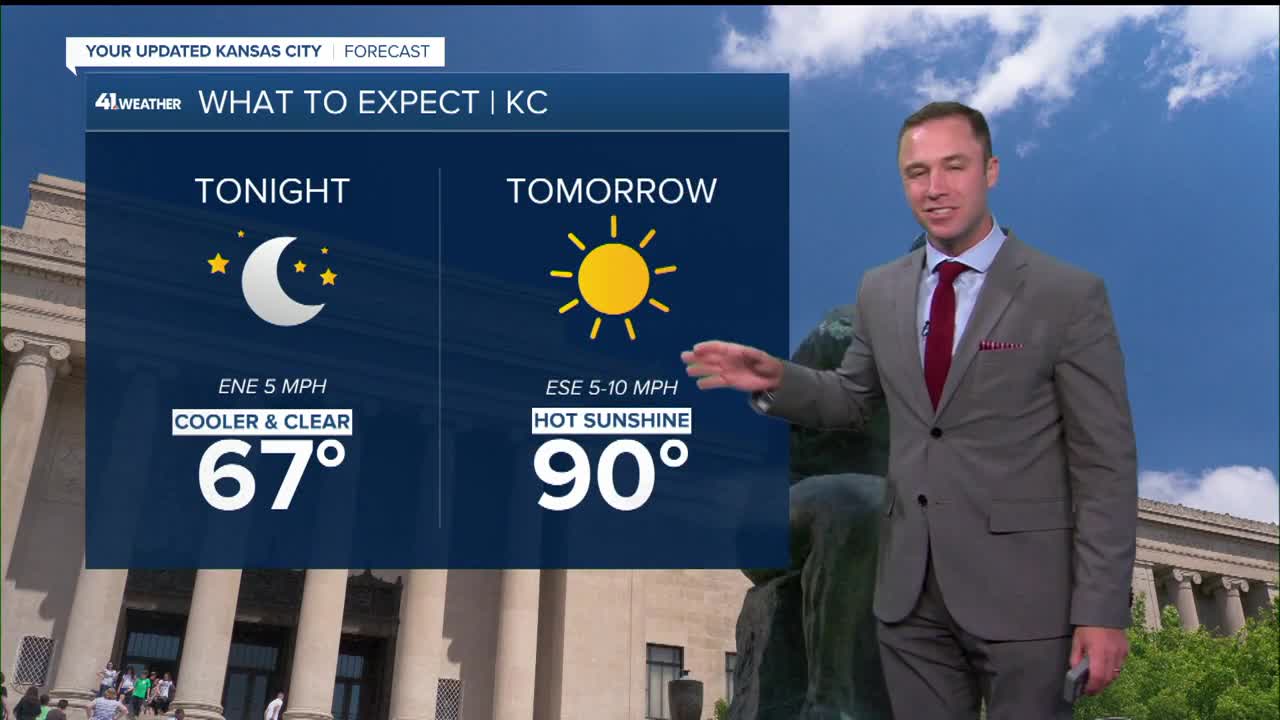 Friday: Mostly sunny and warm. There is a chance of scattered thunderstorms later Friday night, most likely after the Chiefs game.