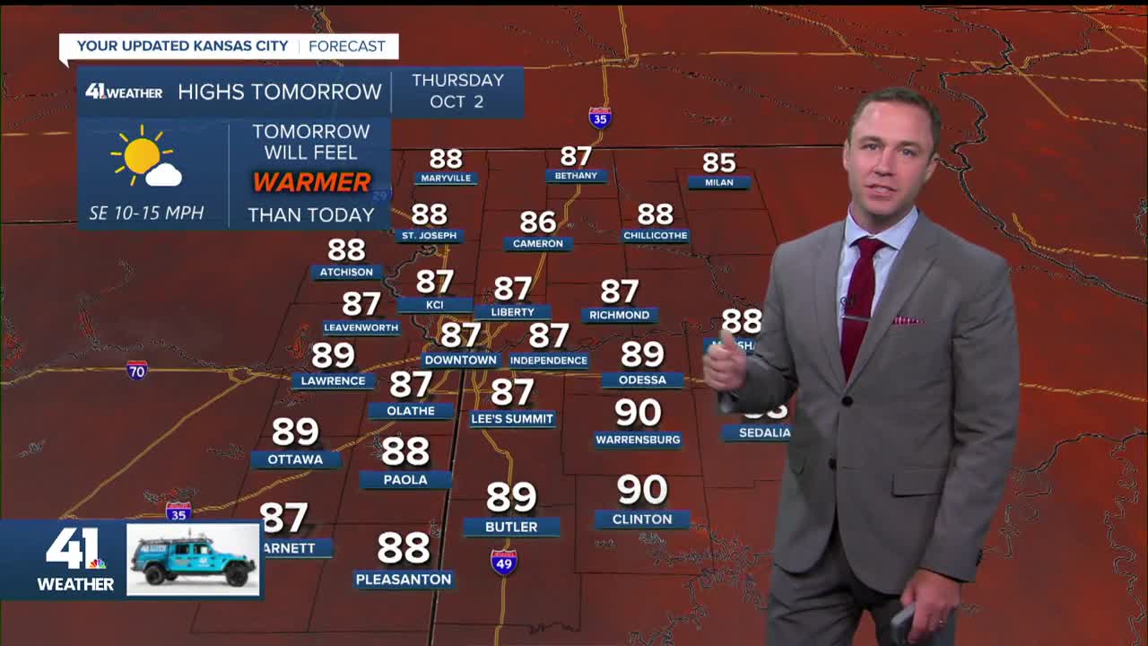 Tonight: Partly to mostly clear. Chance of a shower or storm, especially west of Kansas City, after midnight.