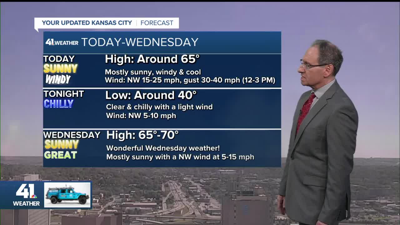 Wednesday: A cold start to a nice fall day with abundant sunshine and much less wind. Frost possible in northern Missouri and Kansas.