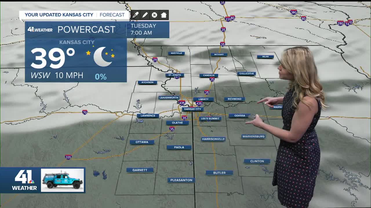 Tuesday: Clouds increase. Chance of afternoon showers. Windy and unseasonably warm.
