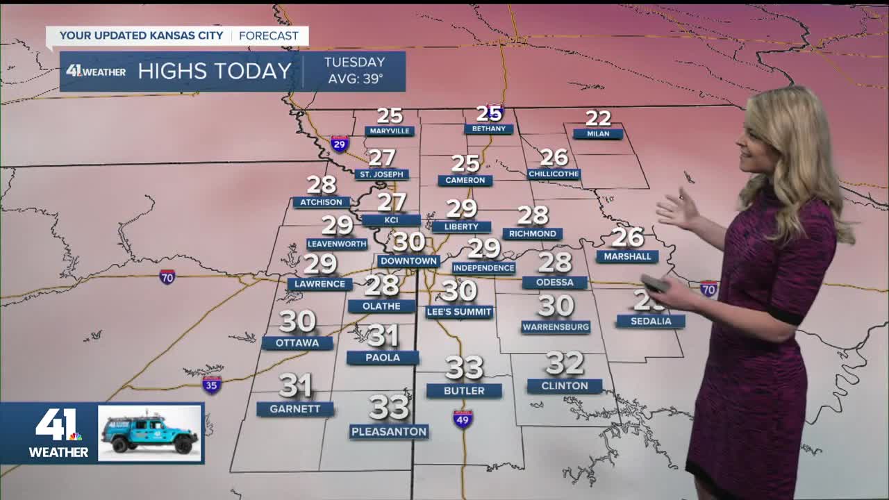 - Best shot at climbing above freezing Wednesday