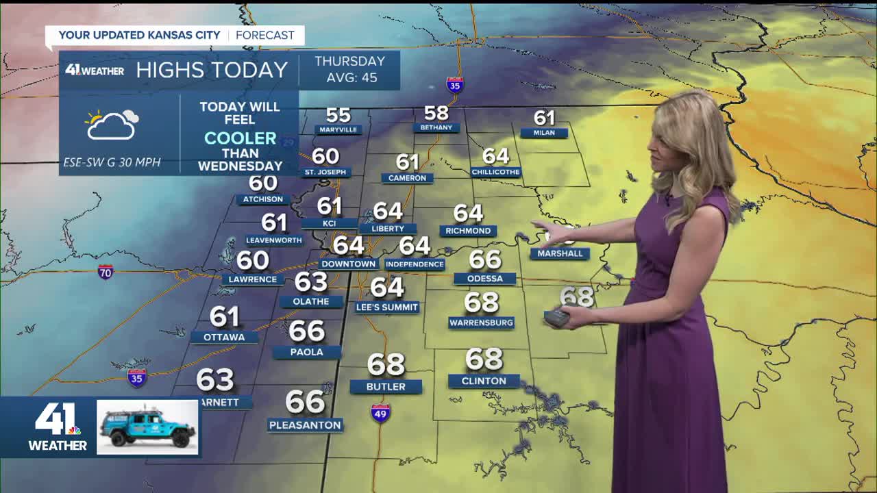 - A strong cold front will rapidly drop Thursday afternoon temperatures.
