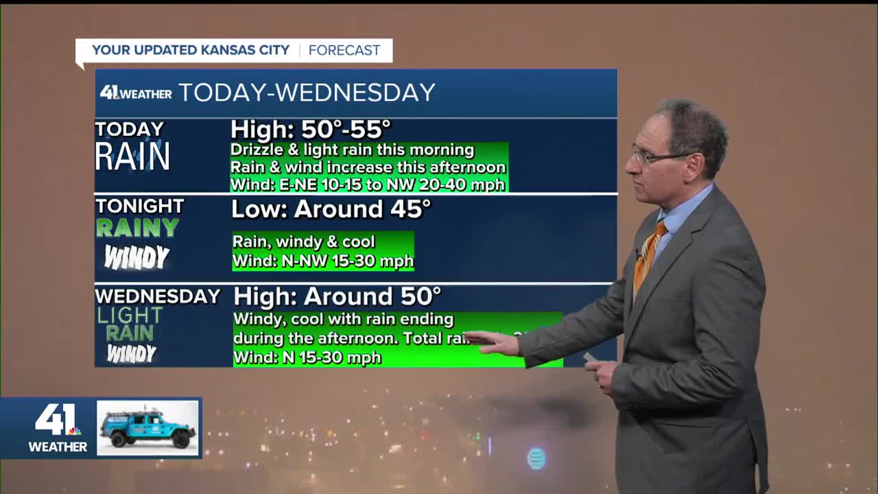 Wednesday: Rain and windy, ending by evening. Rainfall totals 0.50-1.50"