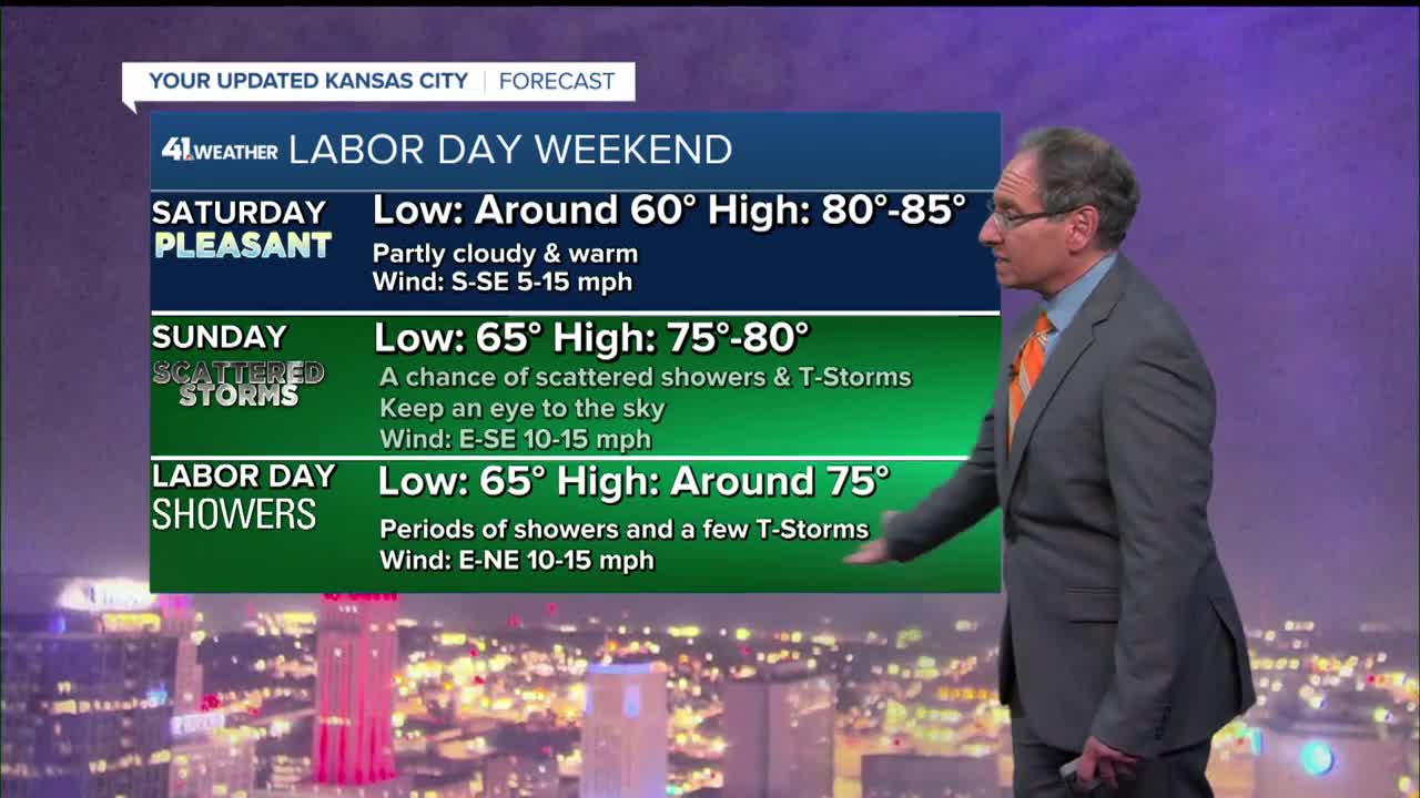 - Increasing chance to see showers and thunderstorms on Sunday and Labor Day