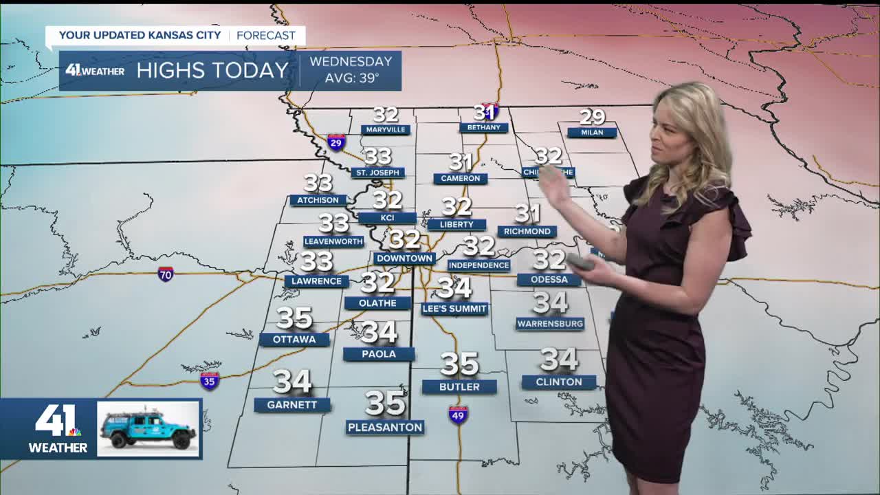 - Best shot at climbing above freezing Wednesday with ample sunshine