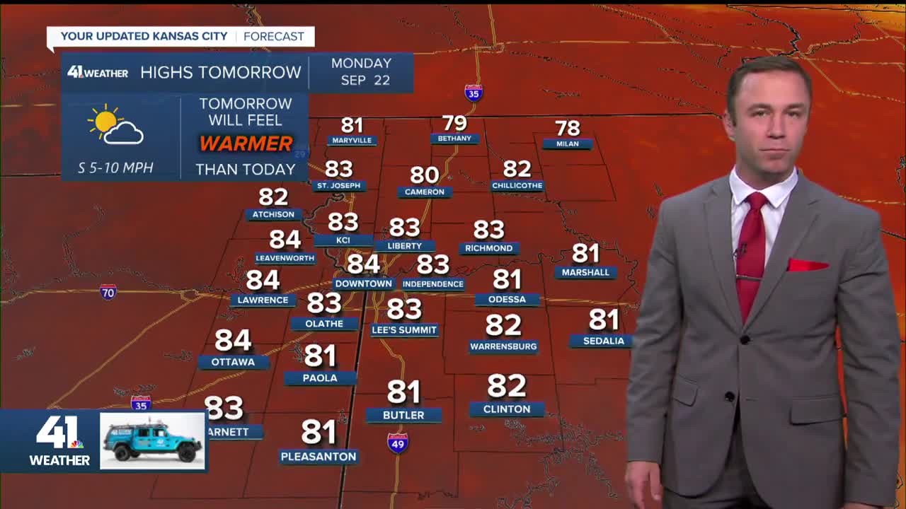 Monday: The first day of autumn is looking dry and warm under a partly cloudy sky. Storms possible overnight.
