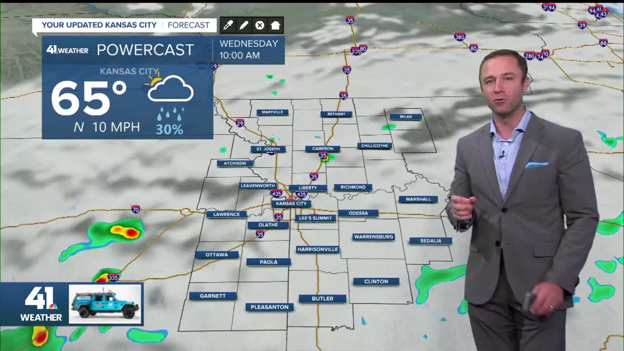 Wednesday: Mostly cloudy with showers possible in the morning, storms in the afternoon. Breezy. Rain chance of 40%