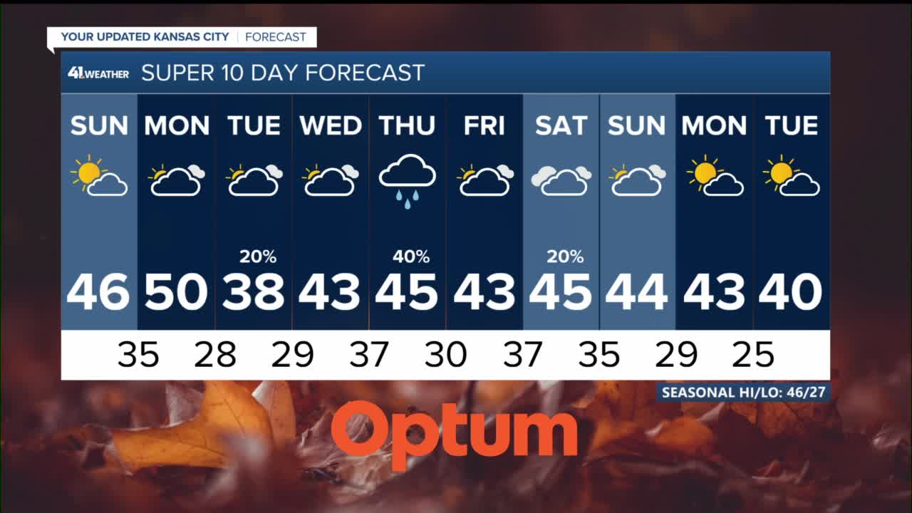 Sunday: Filtered sunshine from high overcast clouds. Wind: S-SW 5-15 mph. Low: 28° High: 46°